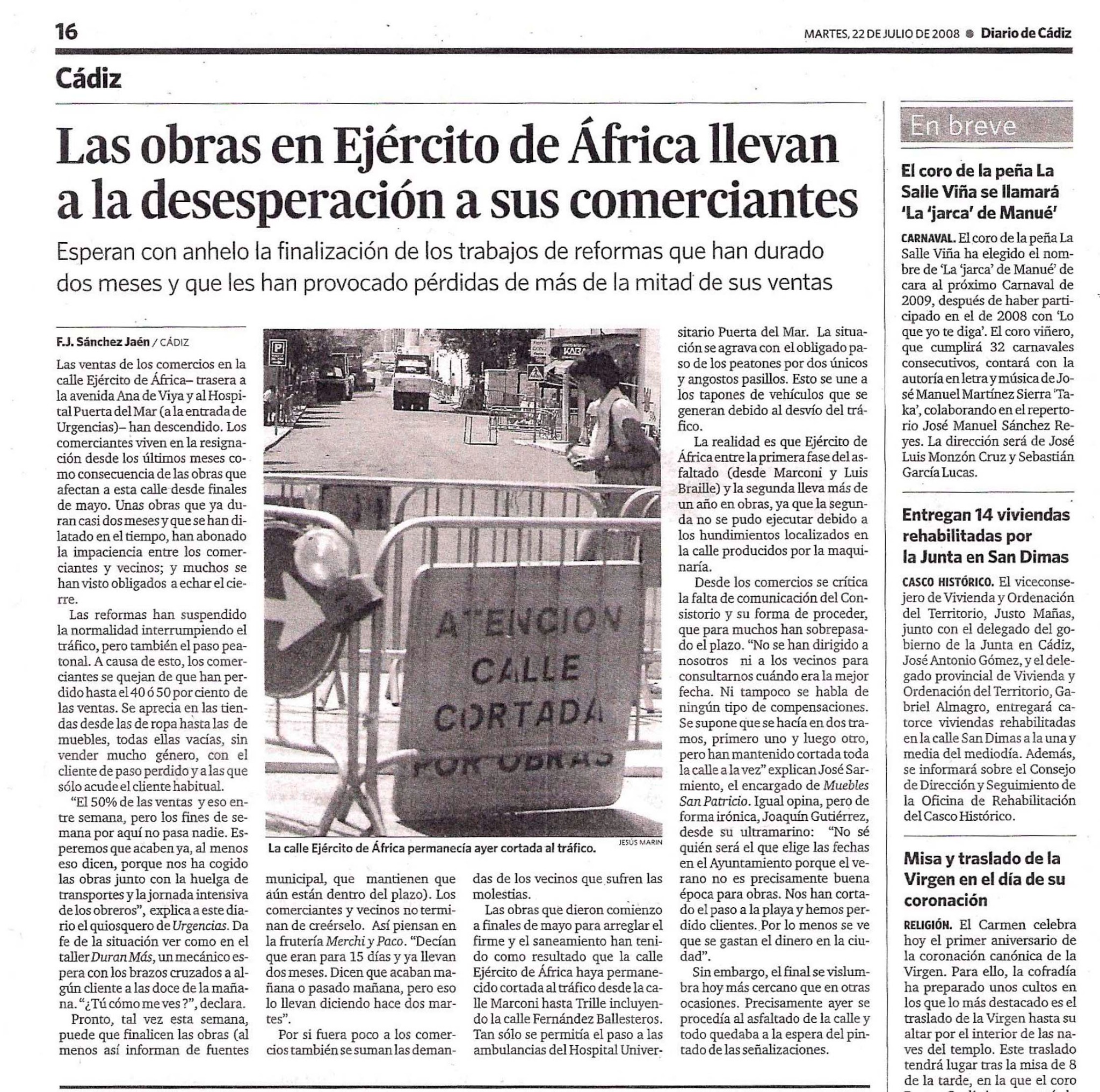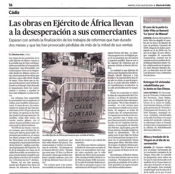 El Diario de Cádiz • 22/07/2008 Las obras en Ejército de África llevan a la desesperación a sus comerciantes